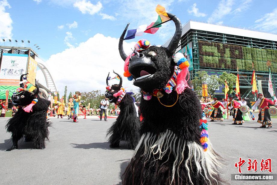 9月1日,為期5天的上海世博會西藏周在世博園拉開帷幕;顒又芷陂g,將先后有《天上西藏》寶綱舞臺演出、非物質(zhì)文化遺產(chǎn)展示、街頭花車巡游表演、慶典廣場《雪域歡歌》、特色產(chǎn)品展示等活動與參觀者見面,全方位展示西藏人文魅力。中共中央政治局委員、上海市委書記俞正聲出席本次活動。圖為俞正聲在西藏活動周開幕式歡迎儀式上。中新社記者 湯彥俊 攝