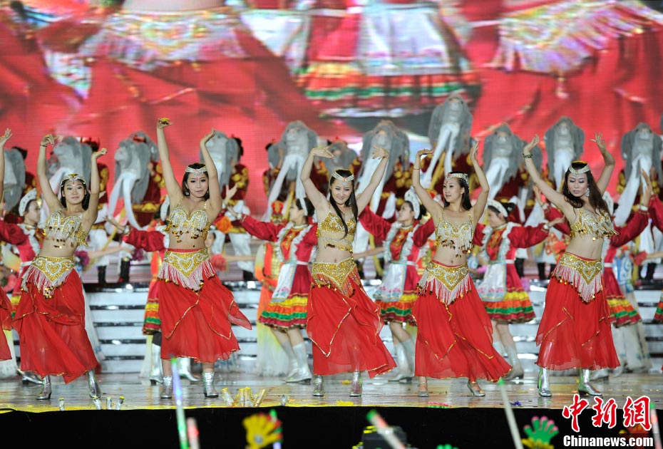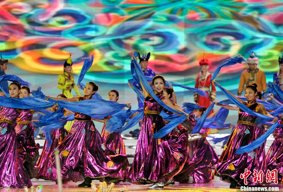 7月16日晚,第十一屆中國(guó)·呼和浩特昭君文化節(jié)在呼和浩特體育場(chǎng)絢麗開幕,充分展現(xiàn)了塞外青城的獨(dú)特魅力。中新網(wǎng)記者 金碩 攝